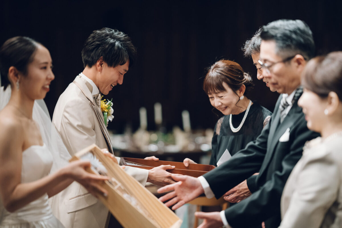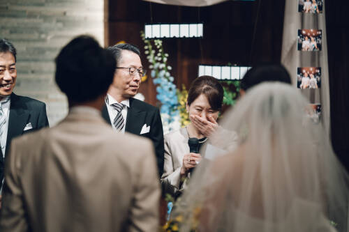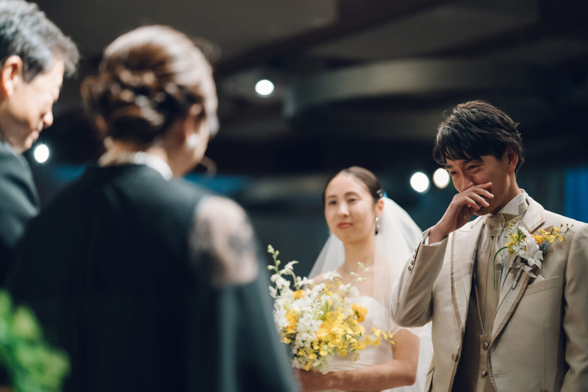 そして、挙式が始まると、新郎新婦様の想いを親御様に届けていただく時間に会場内は涙に包まれます。