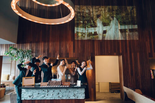 披露宴も結びにさしかかると、エンドロールムービーの上映時間をご案内し、