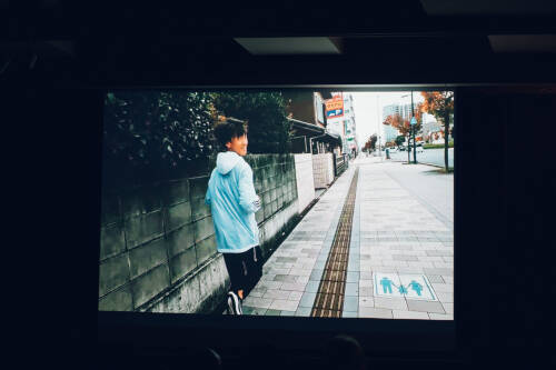 そこで、待合で映画館の待合でも上映されている「予告ムービー」を表現した、お2人の日常ムービーを上映し、