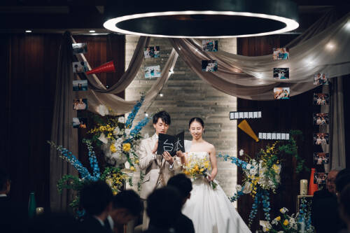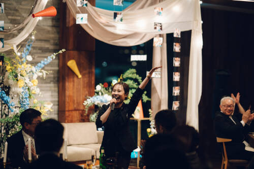 披露宴では、楽しくて笑顔も笑いも溢れる空間に。