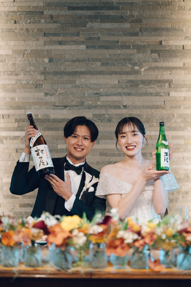 地元のお酒を特別にご用意し、おふたりのルーツを感じていただく演出を取り入れました。