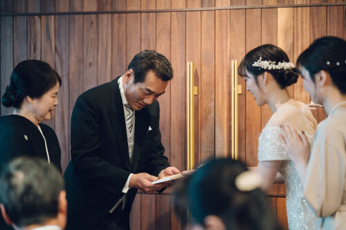 かつてはよく衝突されていたというお父様が、ハンカチで涙をぬぐいながら、新郎様の言葉に静かに耳を傾けられていた姿が、今も鮮明に思い出されます。