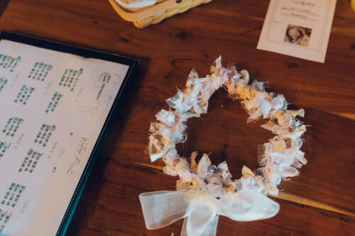 結婚証明書は、お子様用のリボンクラウンをゲスト全員で紡いでいただきました。
