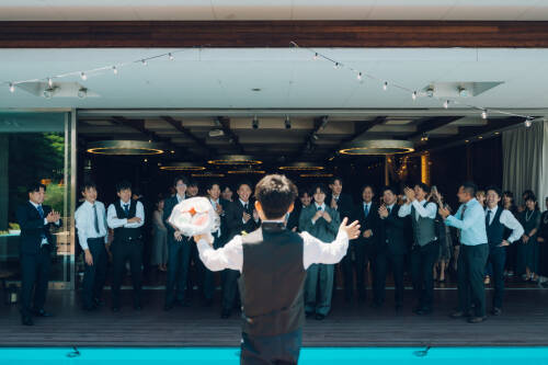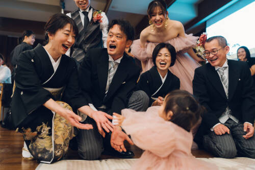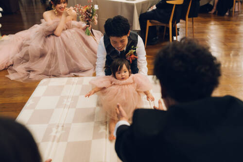 歓談時間には学生時代の思い出話に花が咲き、お子様の頑張る姿をゲスト全員で見守るなど、
