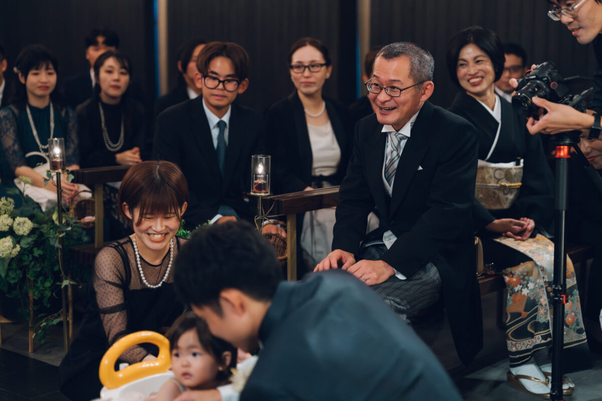 歓談時間には学生時代の思い出話に花が咲き、お子様の頑張る姿をゲスト全員で見守るなど、