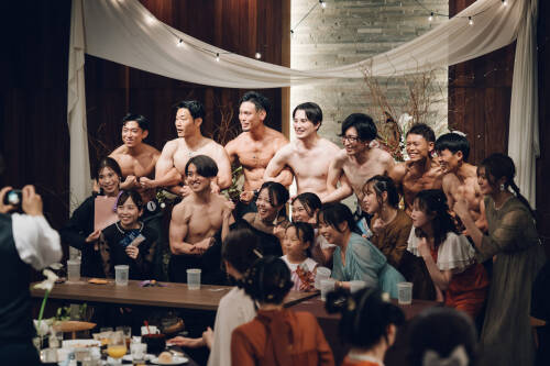 乾杯の後は、新郎様が開業予定のパーソナルジムの商売繁盛を願うだるまの目入れセレモニー、ボディービルダープロテイン早飲み対決、愛あふれるご友人からのお手紙など、笑いと涙に包まれる時間となりました。