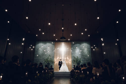 そしていよいよ挙式は、星降るチャペルでのライフシアターの上映からスタート。