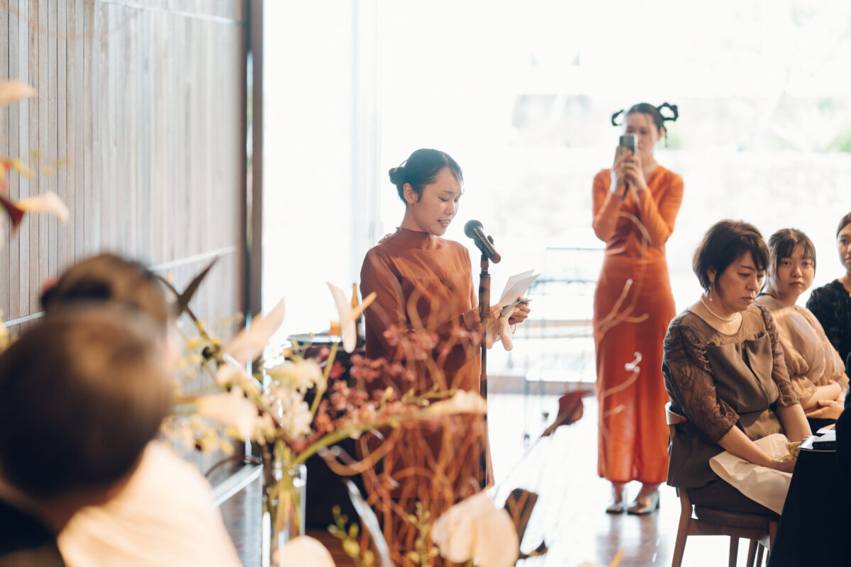 挙式のプログラムがゲストの皆さまからの愛を最も感じられる内容だったため、挙式と披露宴の順番を逆にすることをご提案。