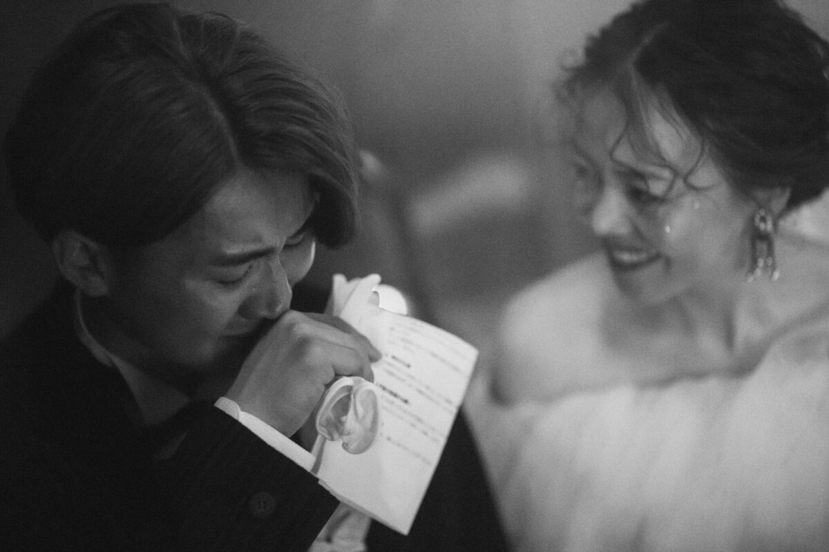 祖母様の声が聞こえた瞬間に涙を流す新郎様、その姿を見て涙される新婦様。