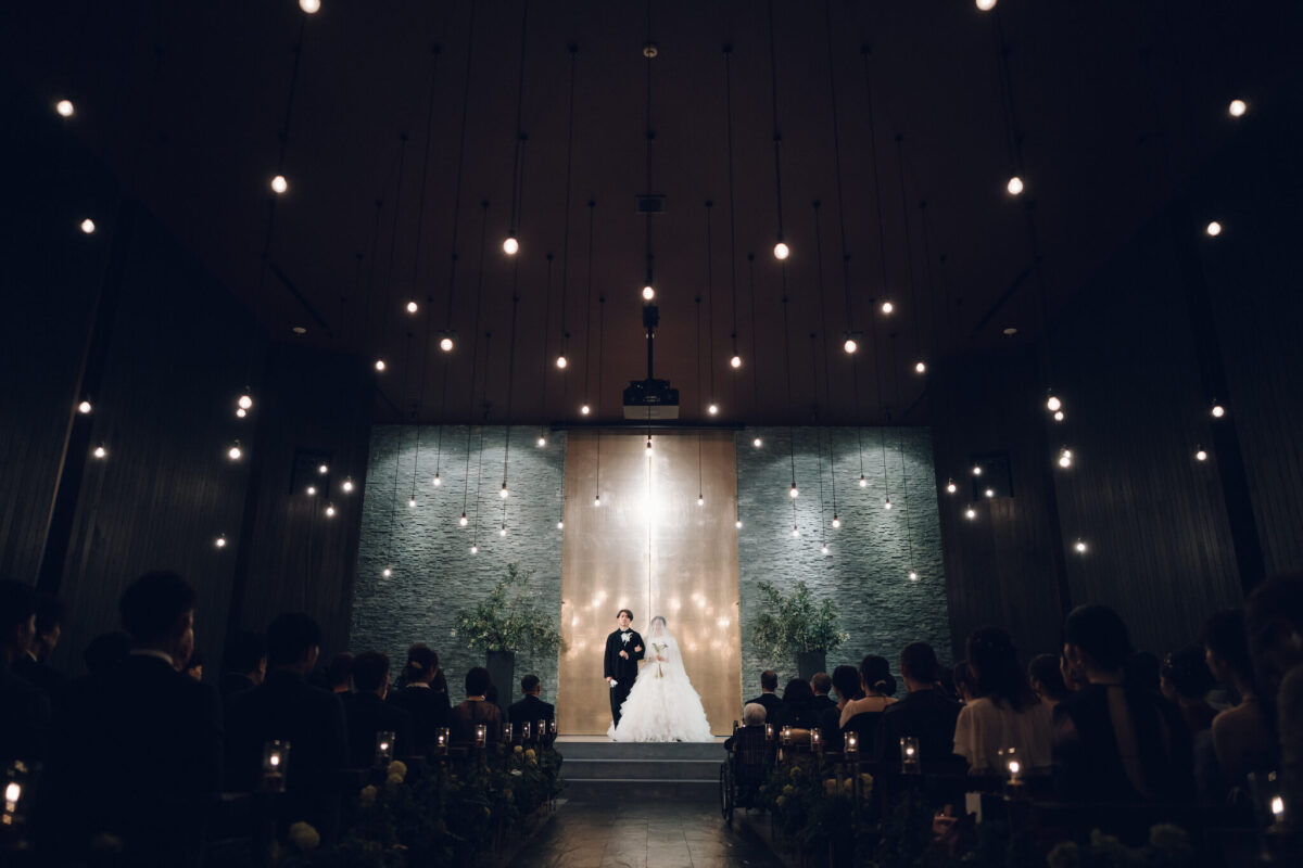 そしていよいよ挙式は、星降るチャペルでのライフシアターの上映からスタート。