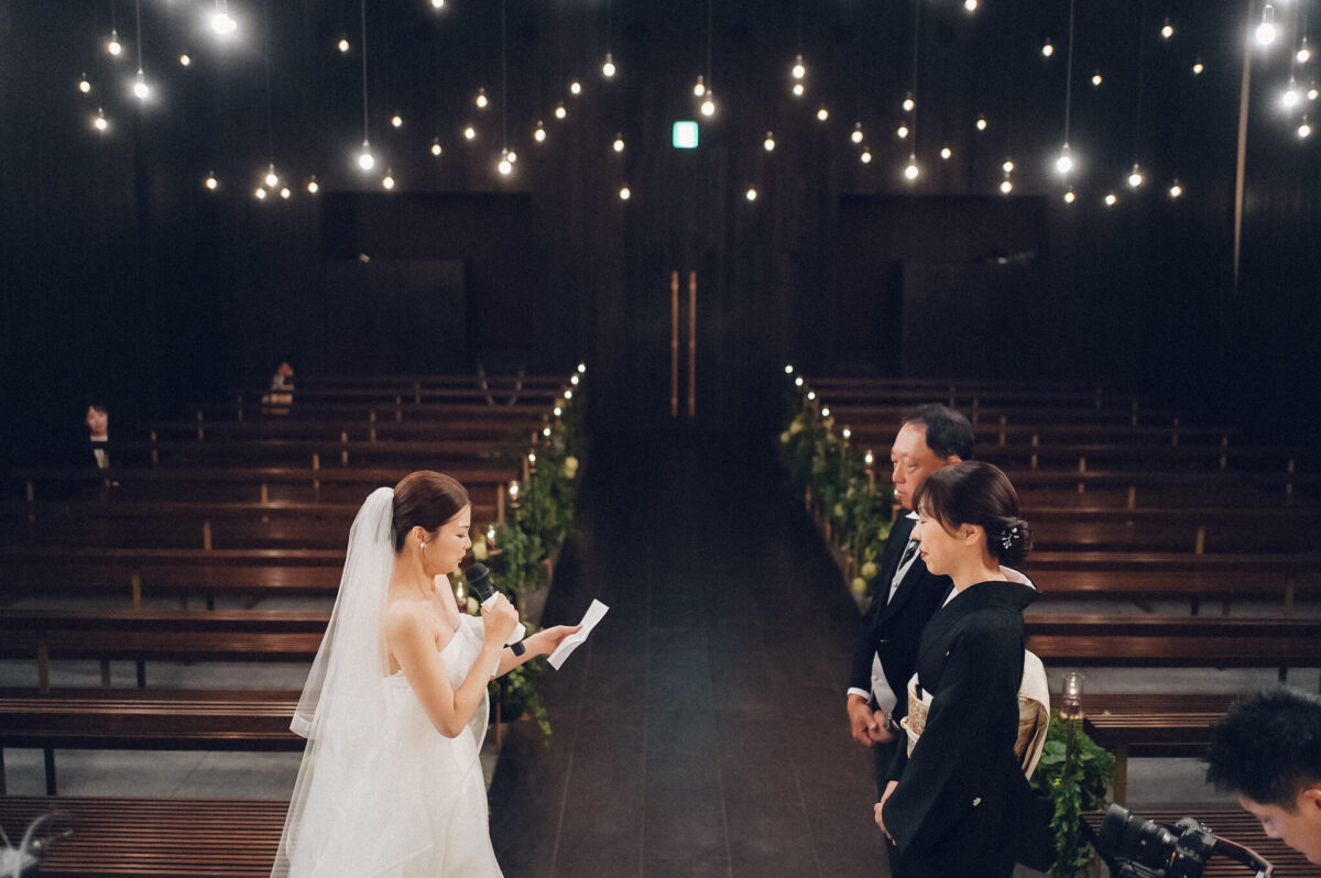 挙式が始まる前、新婦様は天国のお父様へお手紙を読まれました。