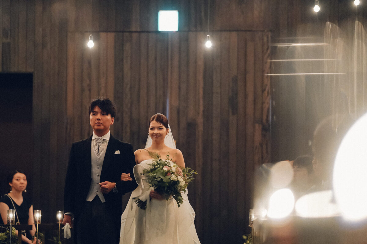胸の奥にある想いを丁寧に届けられたあと、お兄様とともにバージンロードを歩まれました。